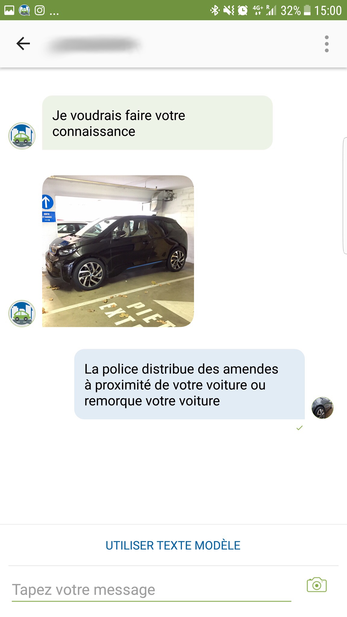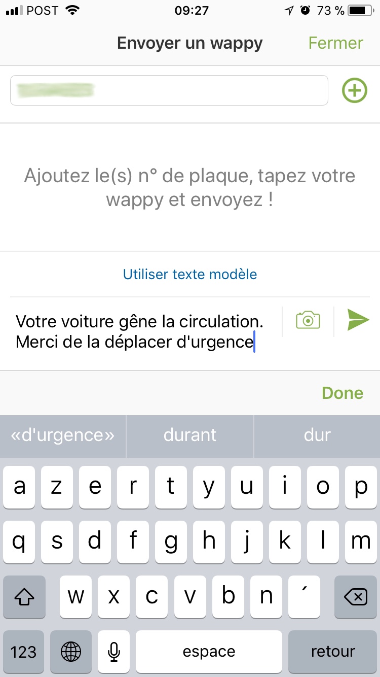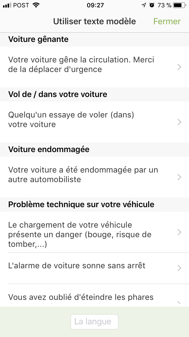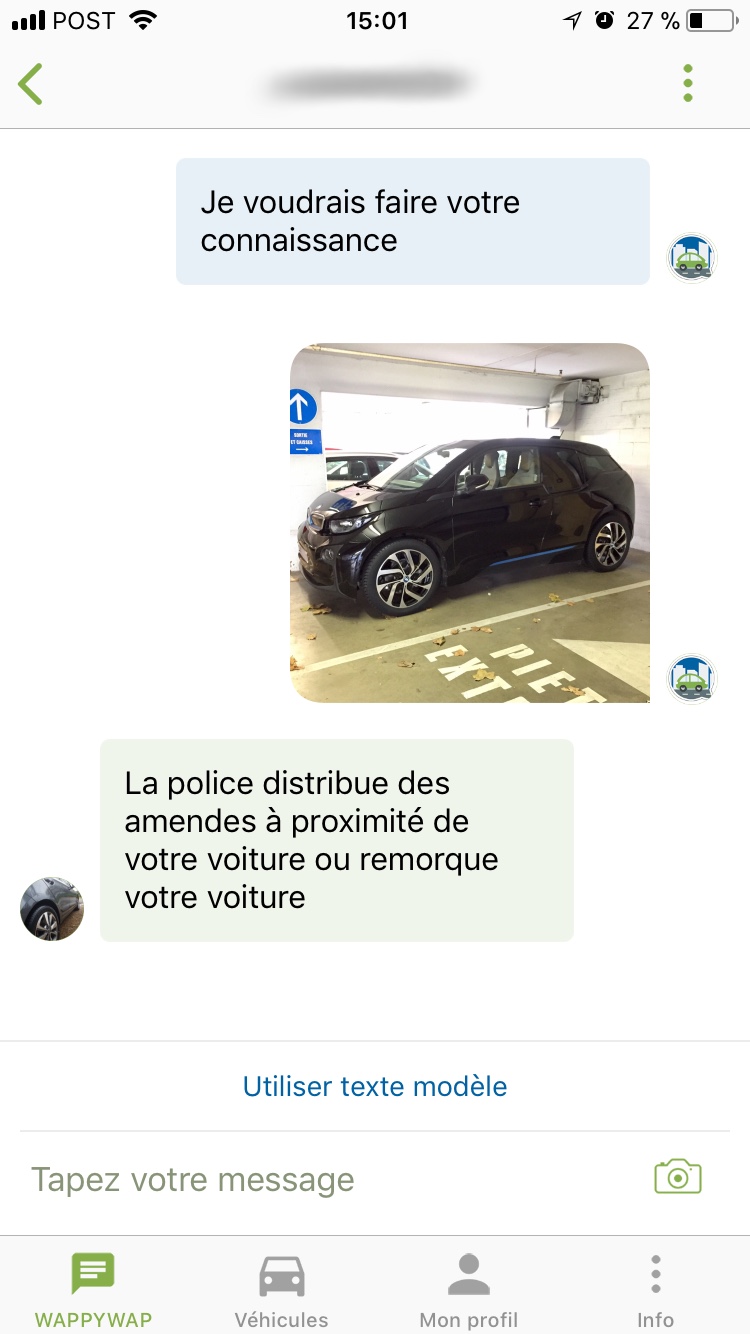 En continuant l’expérience, on découvre avec plaisir une interface assez stable et fonctionnelle. On notera cependant quelques bugs d’affichage sur la version Android mais rien de critique empêchant l’utilisation de l’application et de ses fonctionnalités. La mise en relation avec un propriétaire par le biais de sa plaque d’immatriculation est intuitive, et la discussion démarre instantanément. L’application vous offre également la possibilité de sélectionner des messages préenregistrés, permettant de gagner beaucoup de temps dans la mise en relation avec une personne.