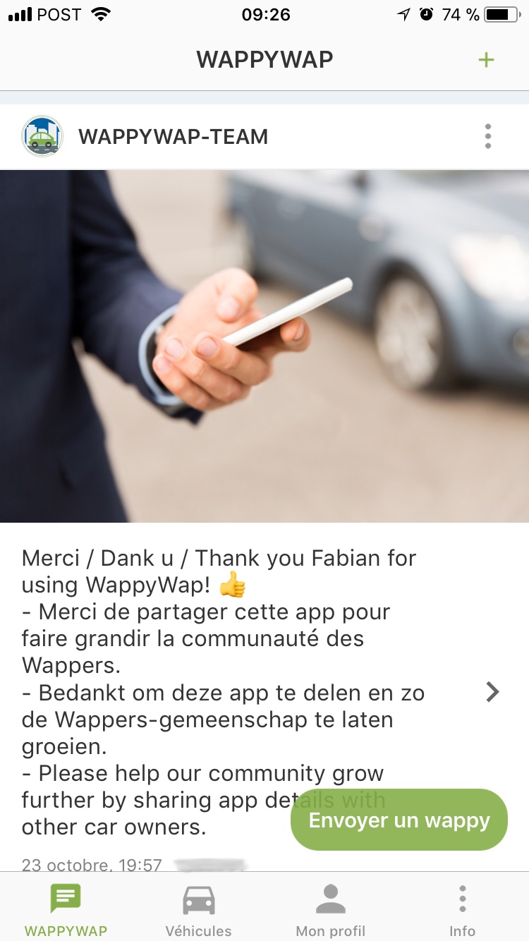 Bonjour chers lecteurs et chères lectrices, aujourd’hui je vous parle d’une initiative 100% belge, WappyWap. Lancée cette année par la société PressInvest, cette application à vocation majoritairement mobile permet aux automobilistes et aux motards de communiquer entre eux en encodant simplement la plaque d’immatriculation de leur interlocuteur. Cela permet par exemple d’indiquer rapidement à une personne que sa voiture gêne la circulation, de quoi potentiellement lui éviter une amende ou un dépannage impromptu. Cool non ?